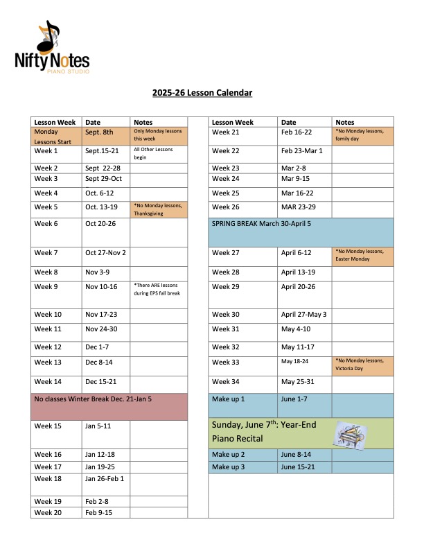 Suzuki Book 1 Group Class Schedule, 2:00-2:45